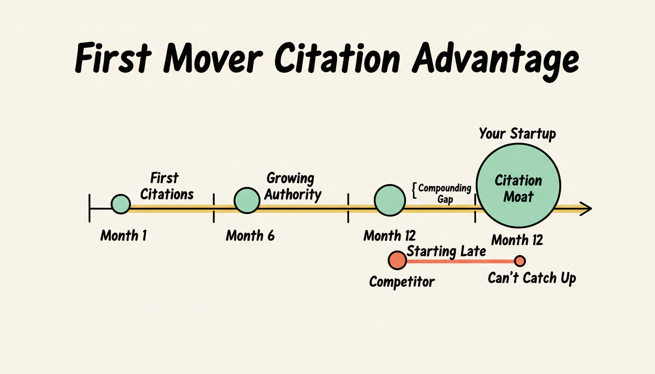 Your competitors are raising capital too. Some of them are already investing in AI search. The startup that claims topical authority in your category first will have a structural advantage that compounds over every funding round.